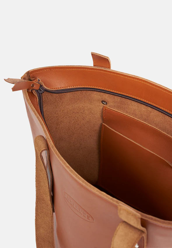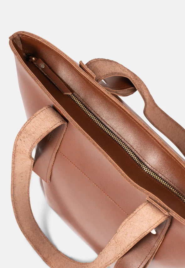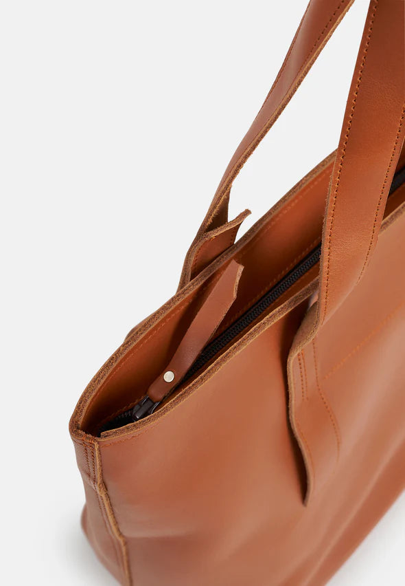 Fjord Tote Bag er laget av farget lær av høy kvalitet, med glidelås som lukking. Det er også en liten lomme på innsiden hvor det er plass til nøkler eller telefon. Vesken rommer fint både pc og dokumenter, og egner seg både til jobb og bytur.